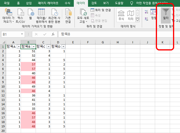 엑셀에서 가장 많이 쓰는 기능은 데이터의 필터 기능이다.